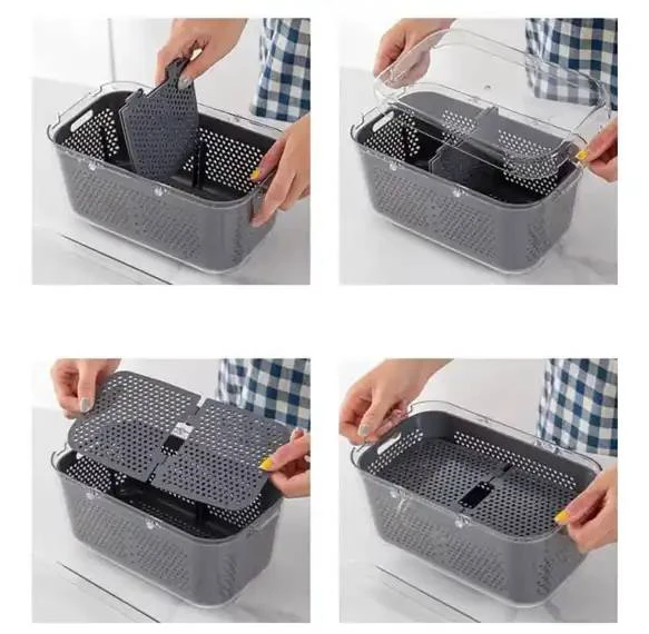 - نظام تصريف ذكي: تأتي مزودة بسلة تصريف داخلية تسمح لكِ بغسل الخضروات وتصفيتها مباشرة بعد التقطيع دون الحاجة لأواني إضافية.