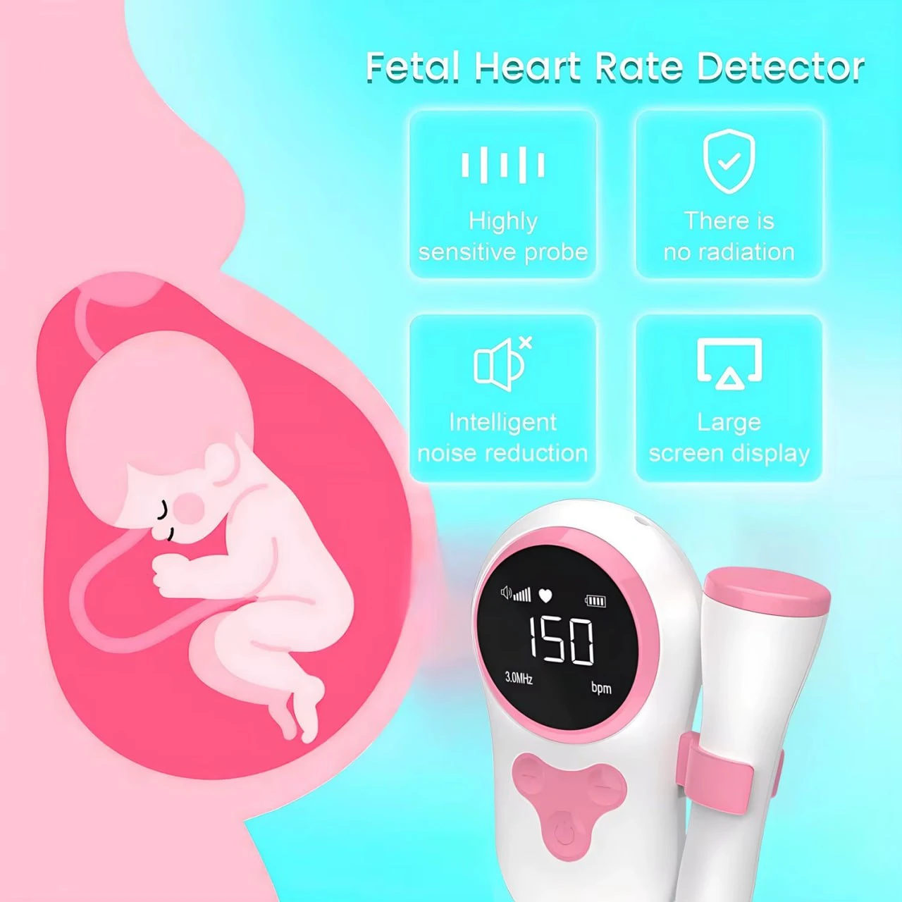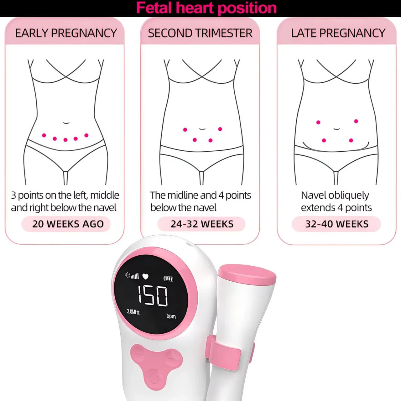 ✔️ جهاز مراقبة الجنين دوبلر 3.0 ميجا هرتز، جهاز مراقبة معدل ضربات قلب الطفل الرقمي، معدل ضربات قلب الجنين