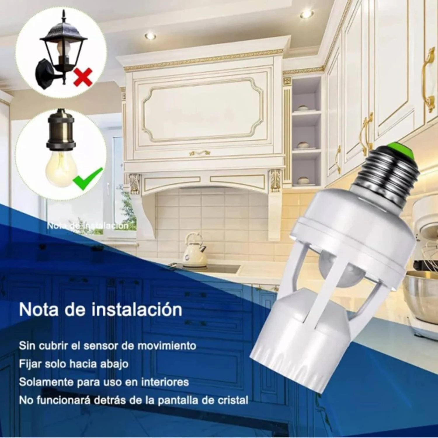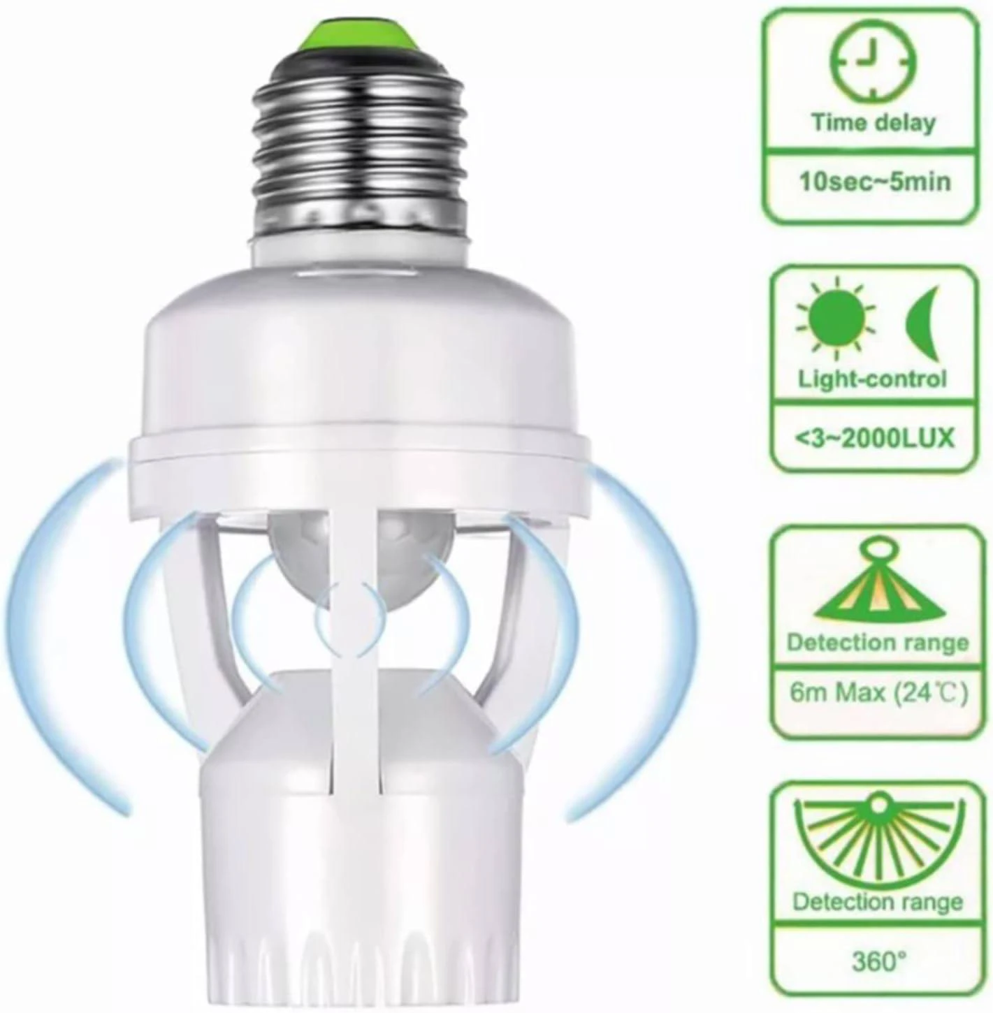 حامل مصباح ذكي (دواية) مزود بمستشعر حركة بالأشعة تحت الحمراء (PIR)، يتيح لك تحويل أي لمبة عادية إلى لمبة تعمل تلقائياً عند مرور شخص ما.