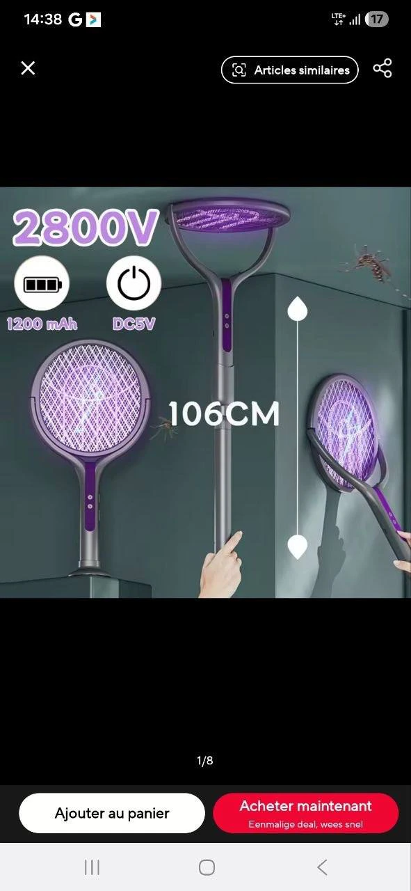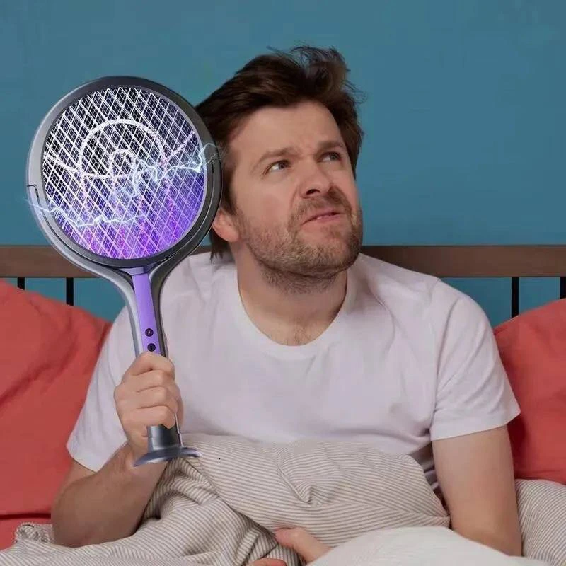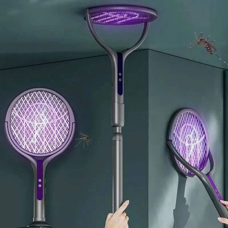 مضرب وصاعق البعوض الذكي 3 في 1 (قابل للتمدد والدوران)