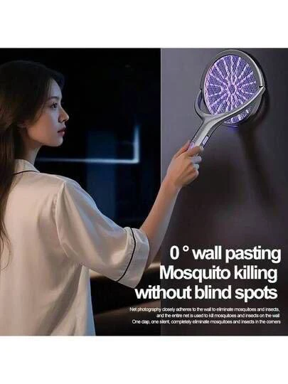 - رأس دوار بزاوية 90 درجة: يمكن طي رأس المضرب ليصبح موازياً للسطح، مما يتيح لك القضاء على البعوض المستقر على الجدران أو الأسقف مباشرة (0° Wall Pasting) دون ترك أي زوايا ميتة.