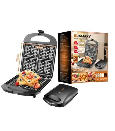 صانع الوافل الكهربائي من جاماكي (JAMAKY)الموديل: JMK2032B يعد هذا الجهاز الخيار الأمثل لمحبي الإفطار السريع واللذيذ، حيث يجمع بين القوة العالية والتصميم العملي لتحضير 4 قطع من الوافل المقرمش في دقائق معدودة. المواصفات الفنية: