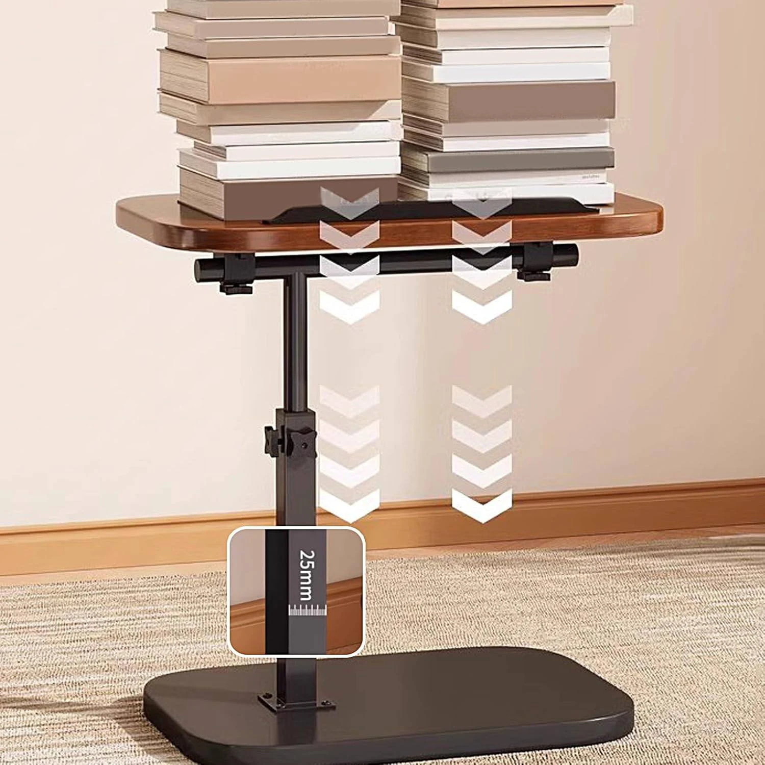- قوة تحمل عالية: رغم صغر حجمها، الهيكل المعدني (بسمك 25 ملم للقائم الرئيسي) مصمم لتحمل الأوزان الثقيلة مثل الكتب الكثيرة أو أجهزة الكمبيوتر.