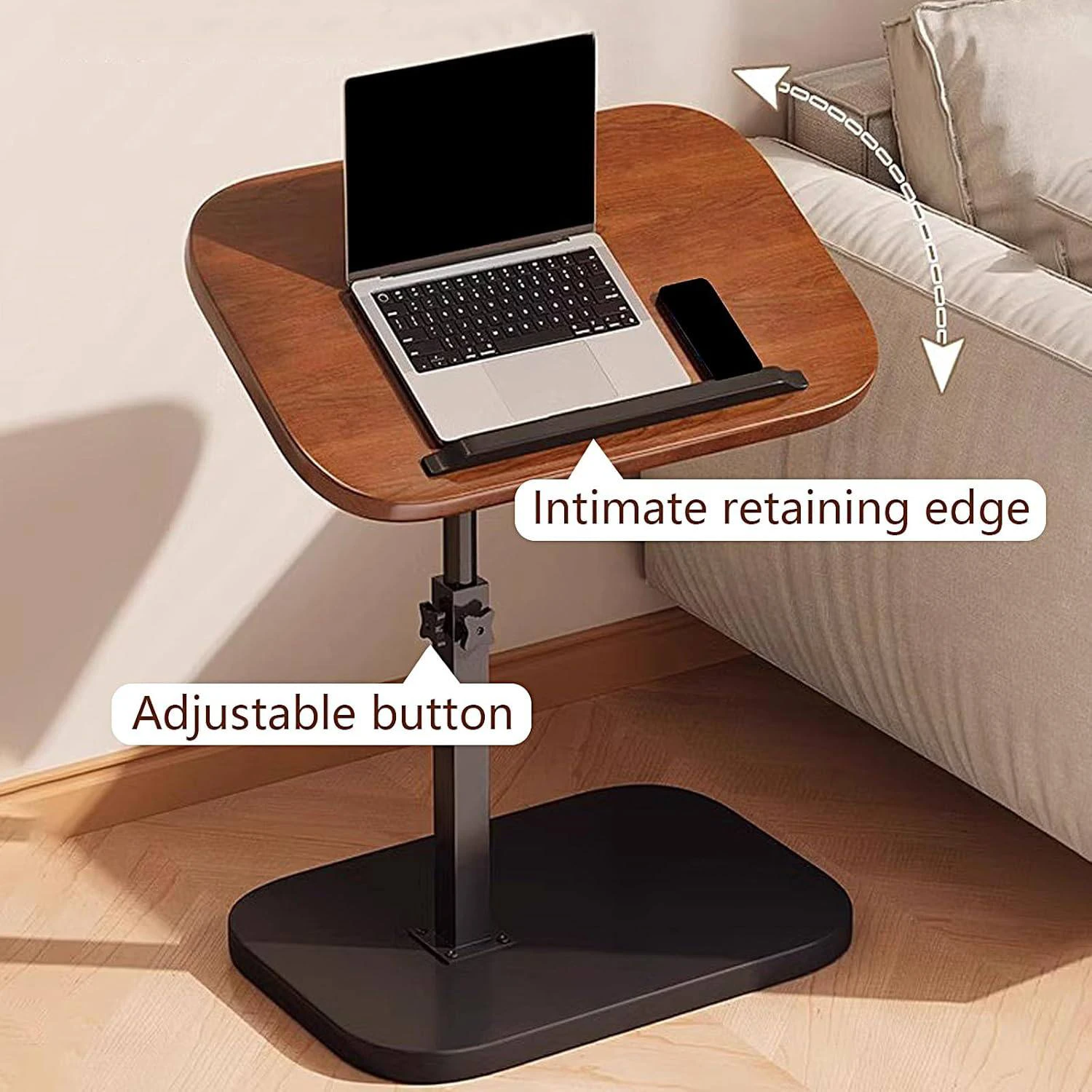 - حافة مانعة للانزلاق (Retaining Edge): مزودة ببروز أمامي "حميمي" يمنع اللابتوب، الكتب، أو الهاتف من الانزلاق عند إمالة الطاولة.